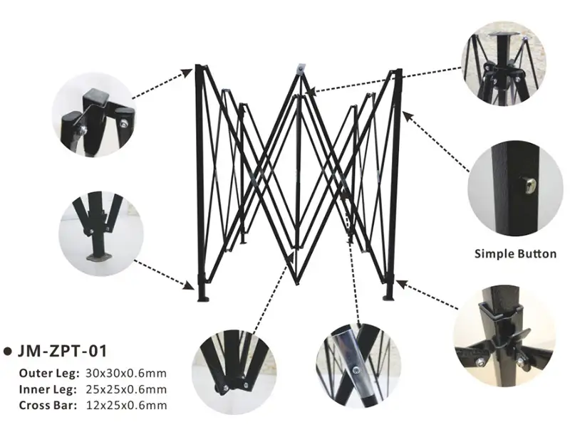A wobbly tent can undermine even the most professional marketing effort. Jarmoo integrates advanced stability features directly into their designs to prevent this. Many models include robust, interlocking frame joints, reinforced leg corners, and come with the option for heavy-duty weighted base plates or sturdy anchor kits. These features work in concert to create a rock-solid foundation, ensuring your display remains upright and secure, even in challenging weather. This allows your team to operate with confidence, knowing the physical structure is completely reliable.